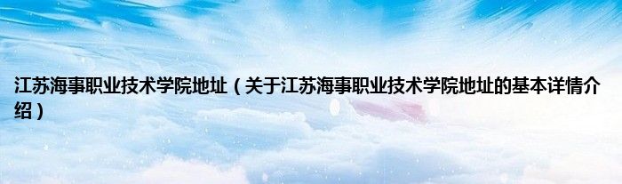 本文关于江苏海事职业技术学院地址的基本详情介绍就讲解完毕,希望对大家有所帮助。