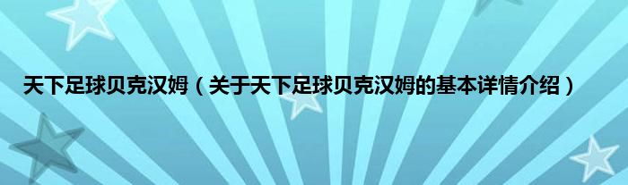 本文关于天下足球贝克汉姆的基本详情介绍就讲解完毕,希望对大家有所帮助。