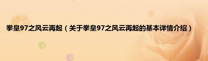 本文关于拳皇97之风云再起的基本详情介绍就讲解完毕,希望对大家有所帮助。