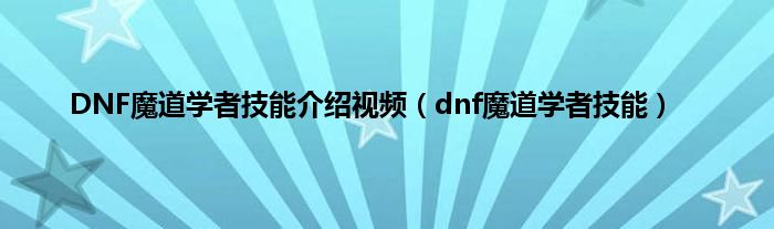 以上就是【DNF魔道学者技能介绍视频,dnf魔道学者技能】相关内容。