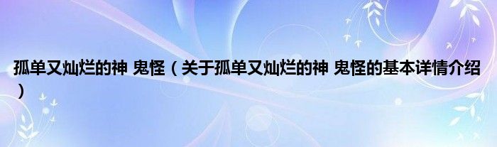 本文关于孤单又灿烂的神 鬼怪的基本详情介绍就讲解完毕,希望对大家有所帮助。