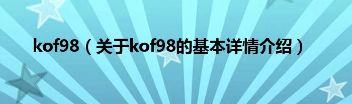 本文关于kof98的基本详情介绍就讲解完毕,希望对大家有所帮助。
