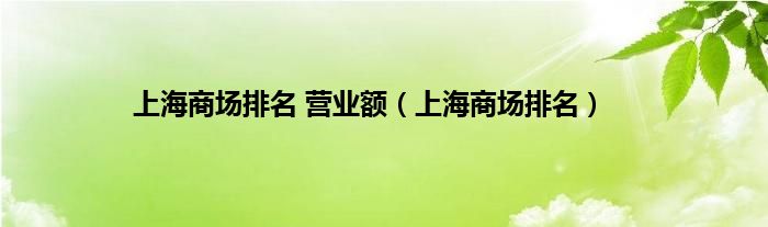 上海商场排名营业额(上海商场排名)