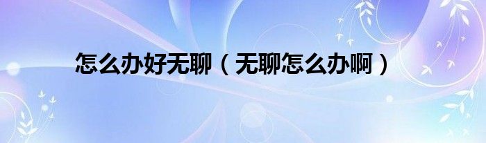 以上就是【怎么办好无聊,无聊怎么办啊】相关内容。