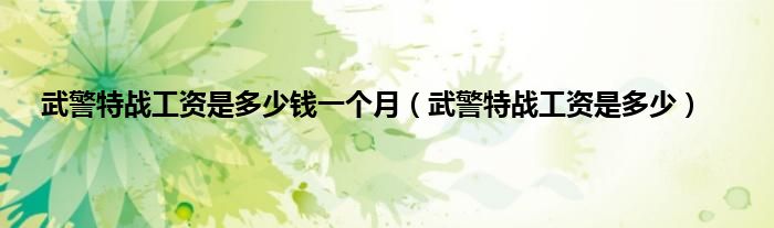 以上就是【武警特战工资是多少钱一个月,武警特战工资是多少】相关内容。