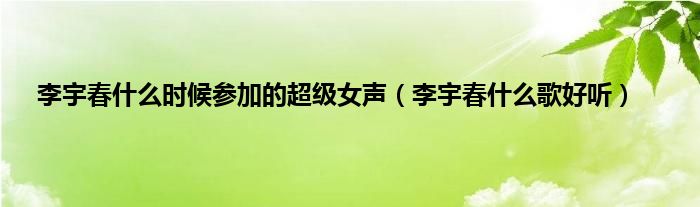 大家好,小问来为大家解答以上问题。李宇春什么时候参加的超级女声,李宇春什么歌好听这个很多人还不知道,现在让我们一起来看看吧!