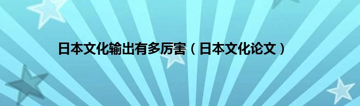 以上就是【日本文化输出有多厉害,日本文化论文】相关内容。