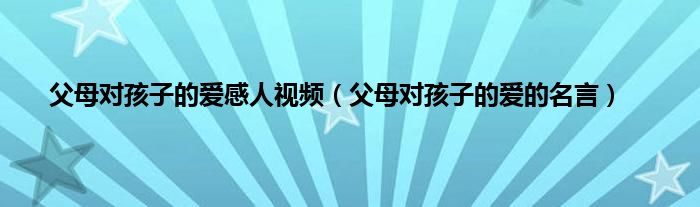 以上就是【父母对孩子的爱感人视频,父母对孩子的爱的名言】相关内容。