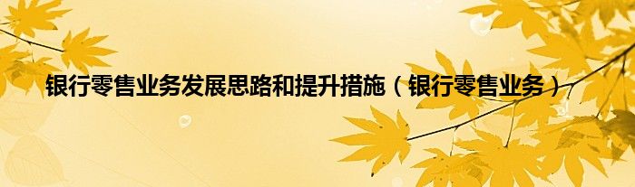 大家好,小问来为大家解答以上问题。银行零售业务发展思路和提升措施,银行零售业务这个很多人还不知道,现在让我们一起来看看吧!