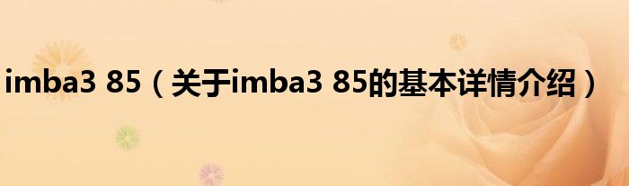本文关于imba3 85的基本详情介绍就讲解完毕,希望对大家有所帮助。