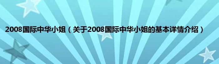 本文关于2008国际中华小姐的基本详情介绍就讲解完毕,希望对大家有所帮助。