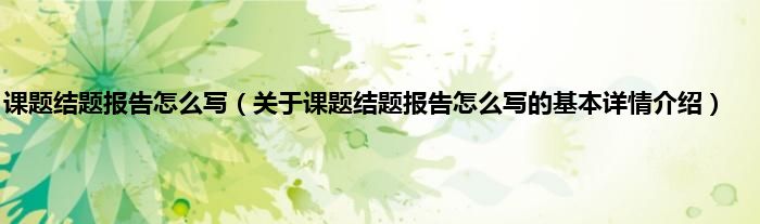 本文关于课题结题报告怎么写的基本详情介绍就讲解完毕,希望对大家有所帮助。