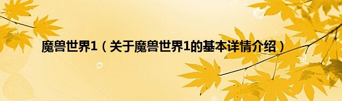 魔兽世界1(关于魔兽世界1的基本详情介绍)