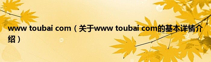 wwwtoubaicom(关于wwwtoubaicom的基本详情介绍)