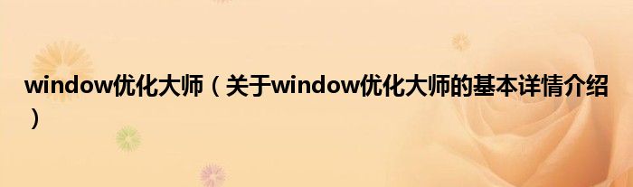 本文关于window优化大师的基本详情介绍就讲解完毕,希望对大家有所帮助。