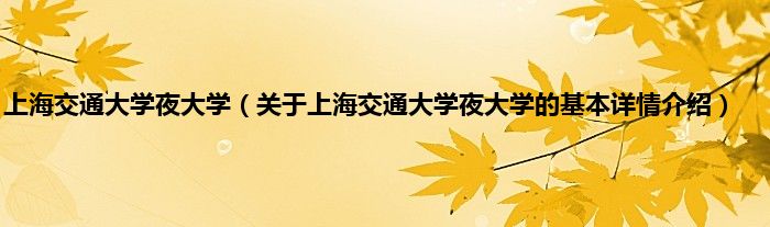 本文关于上海交通大学夜大学的基本详情介绍就讲解完毕,希望对大家有所帮助。