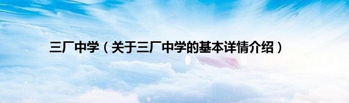 本文关于三厂中学的基本详情介绍就讲解完毕,希望对大家有所帮助。