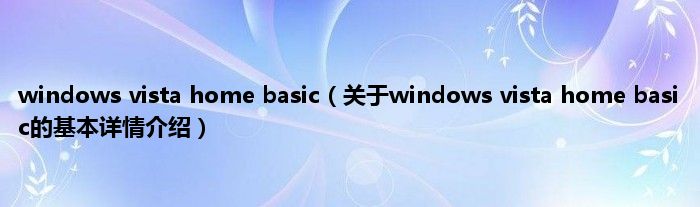 本文关于windows vista home basic的基本详情介绍就讲解完毕,希望对大家有所帮助。