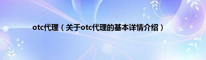 本文关于otc代理的基本详情介绍就讲解完毕,希望对大家有所帮助。