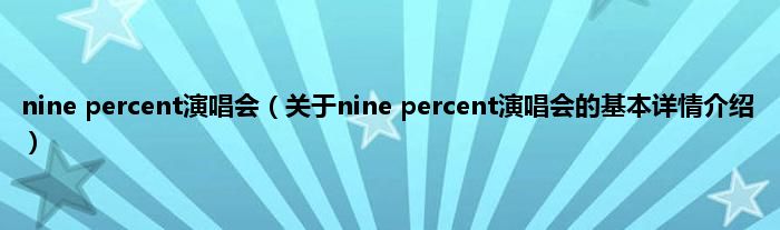 本文关于nine percent演唱会的基本详情介绍就讲解完毕,希望对大家有所帮助。