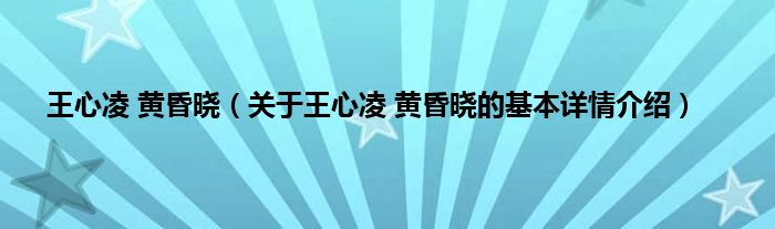 本文关于王心凌 黄昏晓的基本详情介绍就讲解完毕,希望对大家有所帮助。