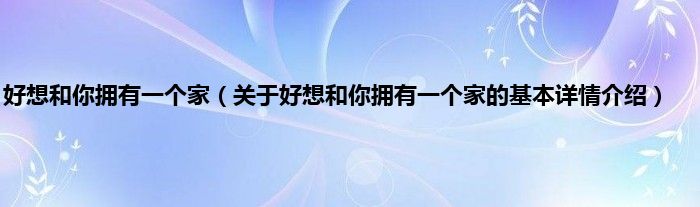 本文关于好想和你拥有一个家的基本详情介绍就讲解完毕,希望对大家有所帮助。