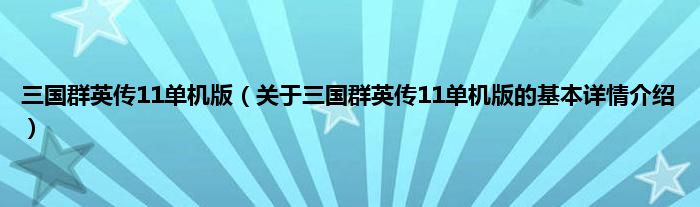 本文关于三国群英传11单机版的基本详情介绍就讲解完毕,希望对大家有所帮助。