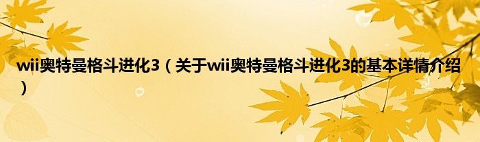 本文关于wii奥特曼格斗进化3的基本详情介绍就讲解完毕,希望对大家有所帮助。