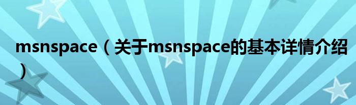 本文关于msnspace的基本详情介绍就讲解完毕,希望对大家有所帮助。