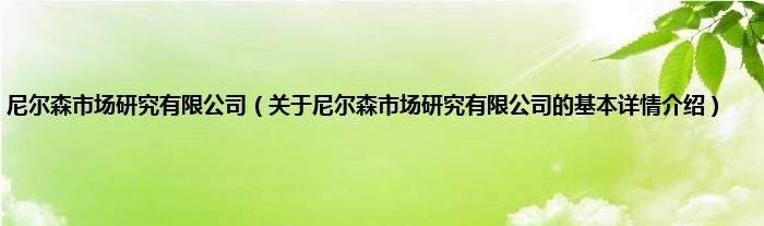 本文关于尼尔森市场研究有限公司的基本详情介绍就讲解完毕,希望对大家有所帮助。