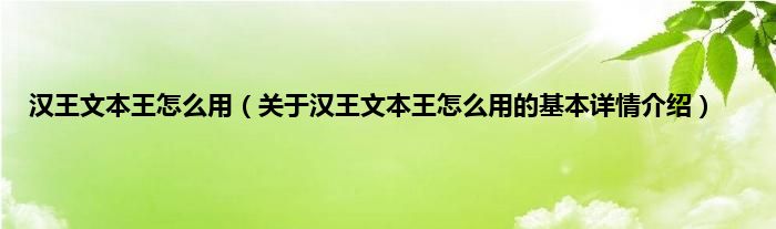 本文关于汉王文本王怎么用的基本详情介绍就讲解完毕,希望对大家有所帮助。