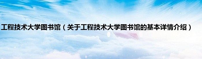 本文关于工程技术大学图书馆的基本详情介绍就讲解完毕,希望对大家有所帮助。