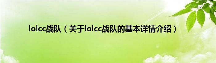 本文关于lolcc战队的基本详情介绍就讲解完毕,希望对大家有所帮助。