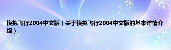 本文关于模拟飞行2004中文版的基本详情介绍就讲解完毕,希望对大家有所帮助。