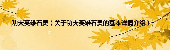 本文关于功夫英雄石灵的基本详情介绍就讲解完毕,希望对大家有所帮助。