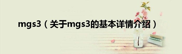 本文关于mgs3的基本详情介绍就讲解完毕,希望对大家有所帮助。