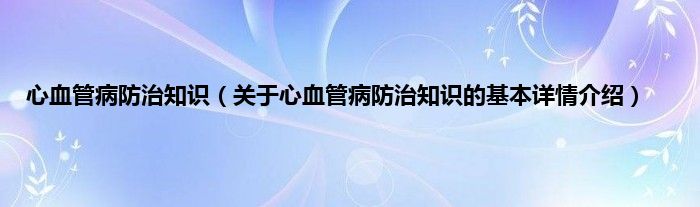 本文关于心血管病防治知识的基本详情介绍就讲解完毕,希望对大家有所帮助。