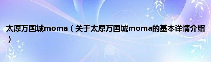 本文关于太原万国城moma的基本详情介绍就讲解完毕,希望对大家有所帮助。