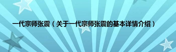 本文关于一代宗师张震的基本详情介绍就讲解完毕,希望对大家有所帮助。