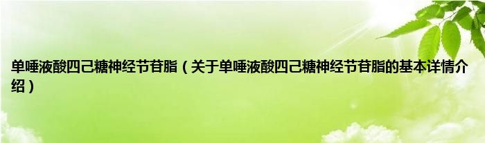 本文关于单唾液酸四己糖神经节苷脂的基本详情介绍就讲解完毕,希望对大家有所帮助。