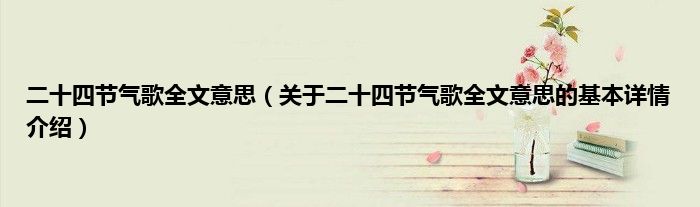 本文关于二十四节气歌全文意思的基本详情介绍就讲解完毕,希望对大家有所帮助。