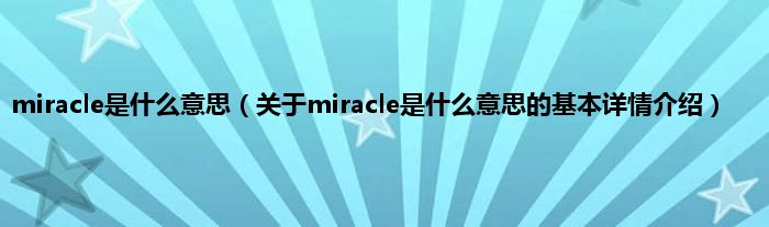 本文关于miracle是什么意思的基本详情介绍就讲解完毕,希望对大家有所帮助。