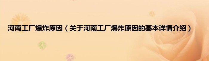 本文关于河南工厂爆炸原因的基本详情介绍就讲解完毕,希望对大家有所帮助。
