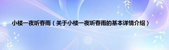 本文关于小楼一夜听春雨的基本详情介绍就讲解完毕,希望对大家有所帮助。