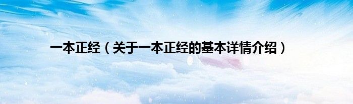 本文关于一本正经的基本详情介绍就讲解完毕,希望对大家有所帮助。