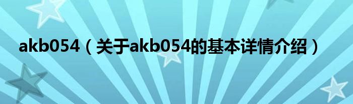 本文关于akb054的基本详情介绍就讲解完毕,希望对大家有所帮助。