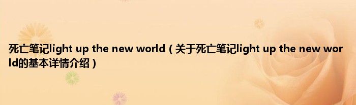 本文关于死亡笔记light up the new world的基本详情介绍就讲解完毕,希望对大家有所帮助。
