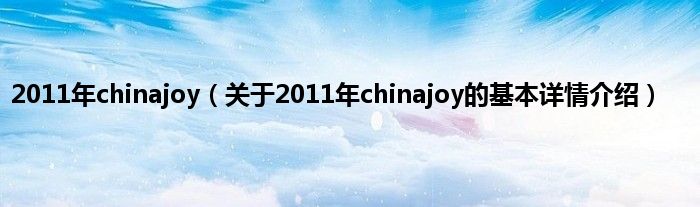 本文关于2011年chinajoy的基本详情介绍就讲解完毕,希望对大家有所帮助。