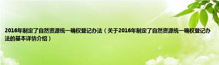 本文关于2016年制定了自然资源统一确权登记办法的基本详情介绍就讲解完毕,希望对大家有所帮助。