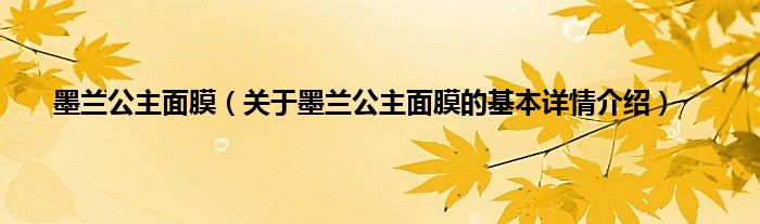 本文关于墨兰公主面膜的基本详情介绍就讲解完毕,希望对大家有所帮助。